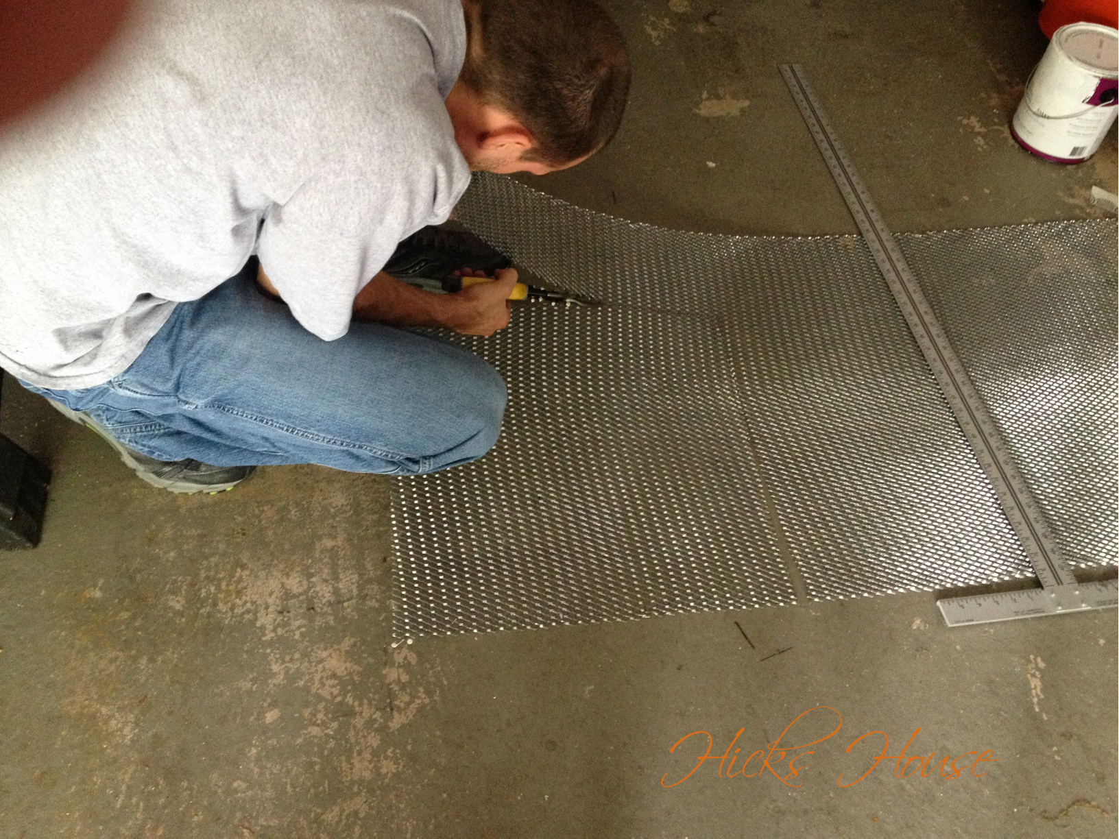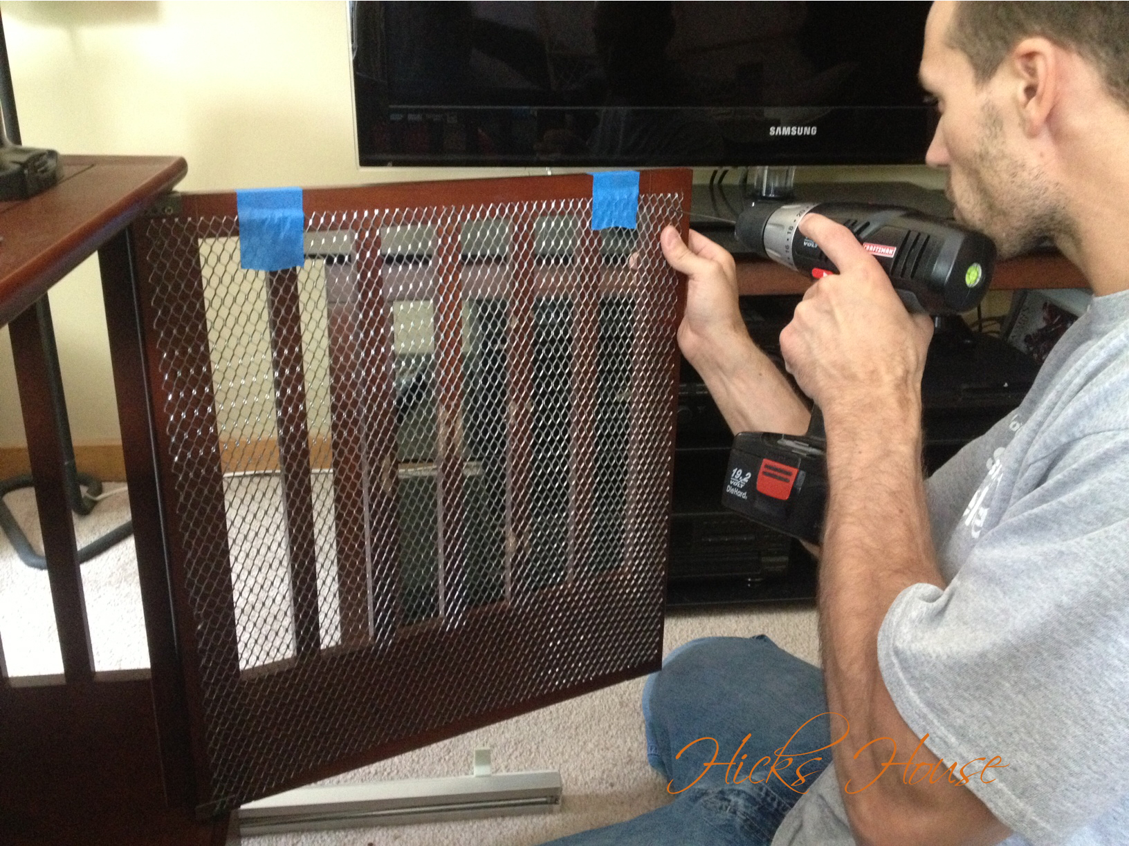 Then Ken had a light-bulb moment…  Wire meshing! It seemed like a perfect idea, nice holes so she can still breathe and look out, but will put a barrier between her teeth and the wooden slats.  So off to the big Orange store Ken went and came home with a nice big piece for less than $10.