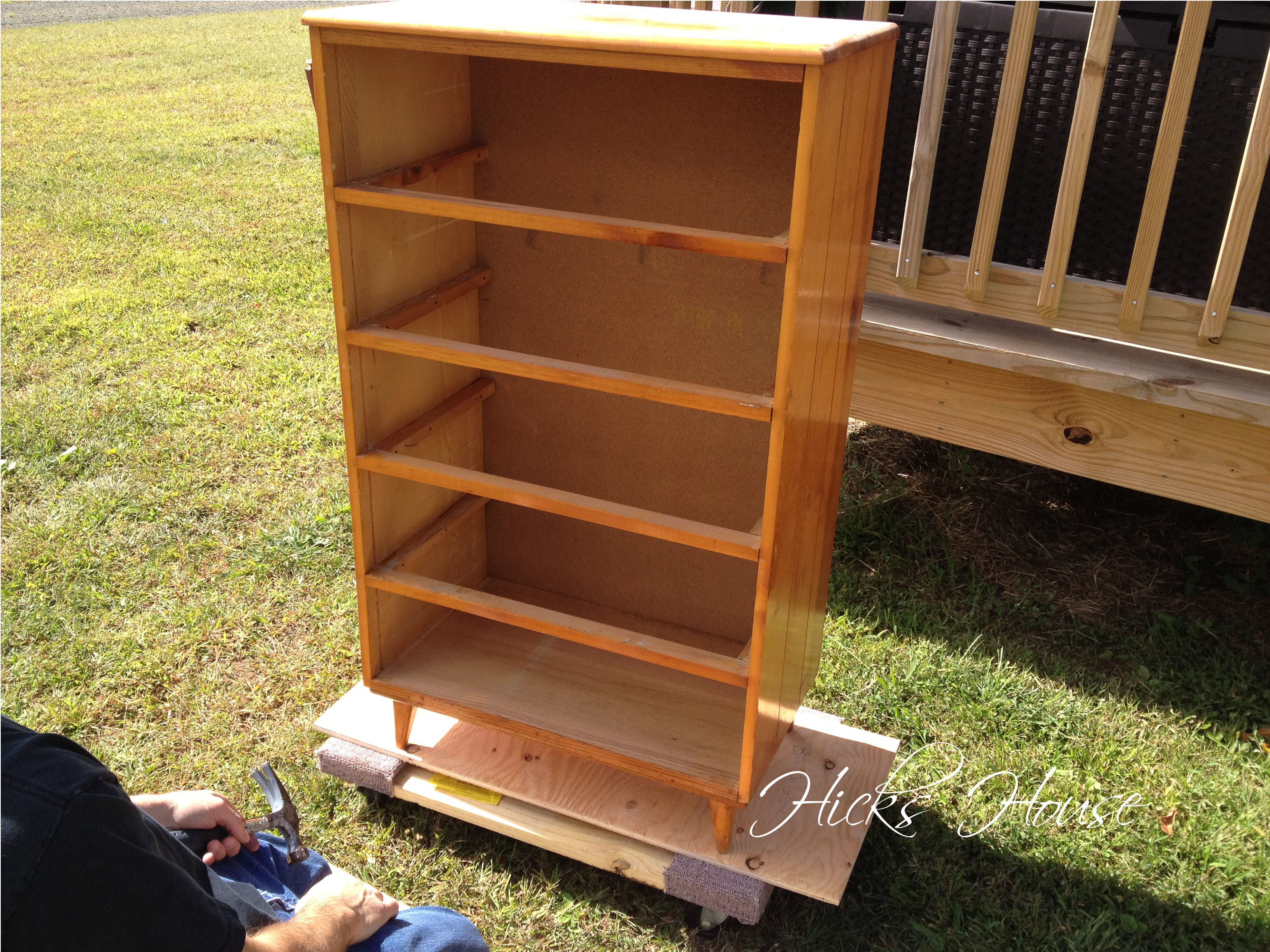 I unfortunately didn’t get a photo of it with all the drawers in before we started as we took it apart to move it but here it is without the drawers.