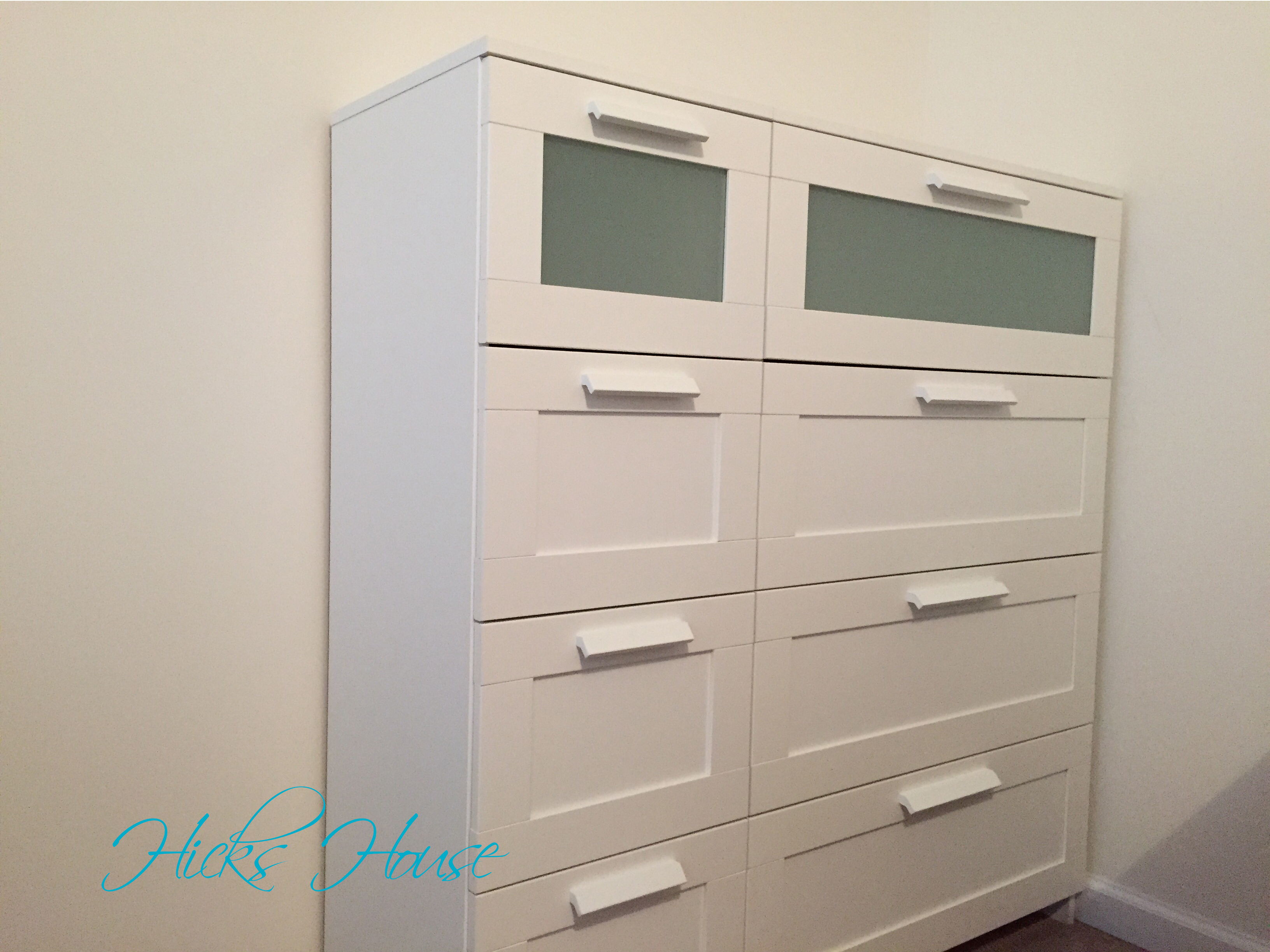 The second 3×3 cube was donated to a friend for their little girls playroom and replaced with two IKEA dressers. They offer the ability to keep my fabric organized in drawers and out of site, should they not be immaculately folded.