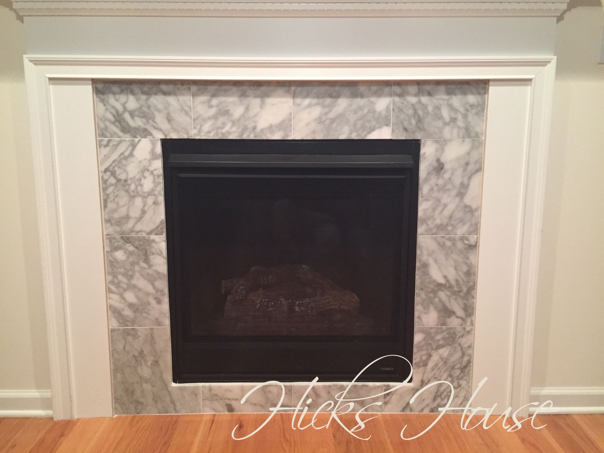 If you dropped in last week for the most amazing backsplash ever, then you are well aware that we are in the midst of a love affair with white marble. It was difficult to refrain myself from covering every surface with the gorgeousness that is cararra marble. But before we held ourselves back we committed to refacing the fireplace. I mean why not, the tile guy was going to be at the house… it was now or never…