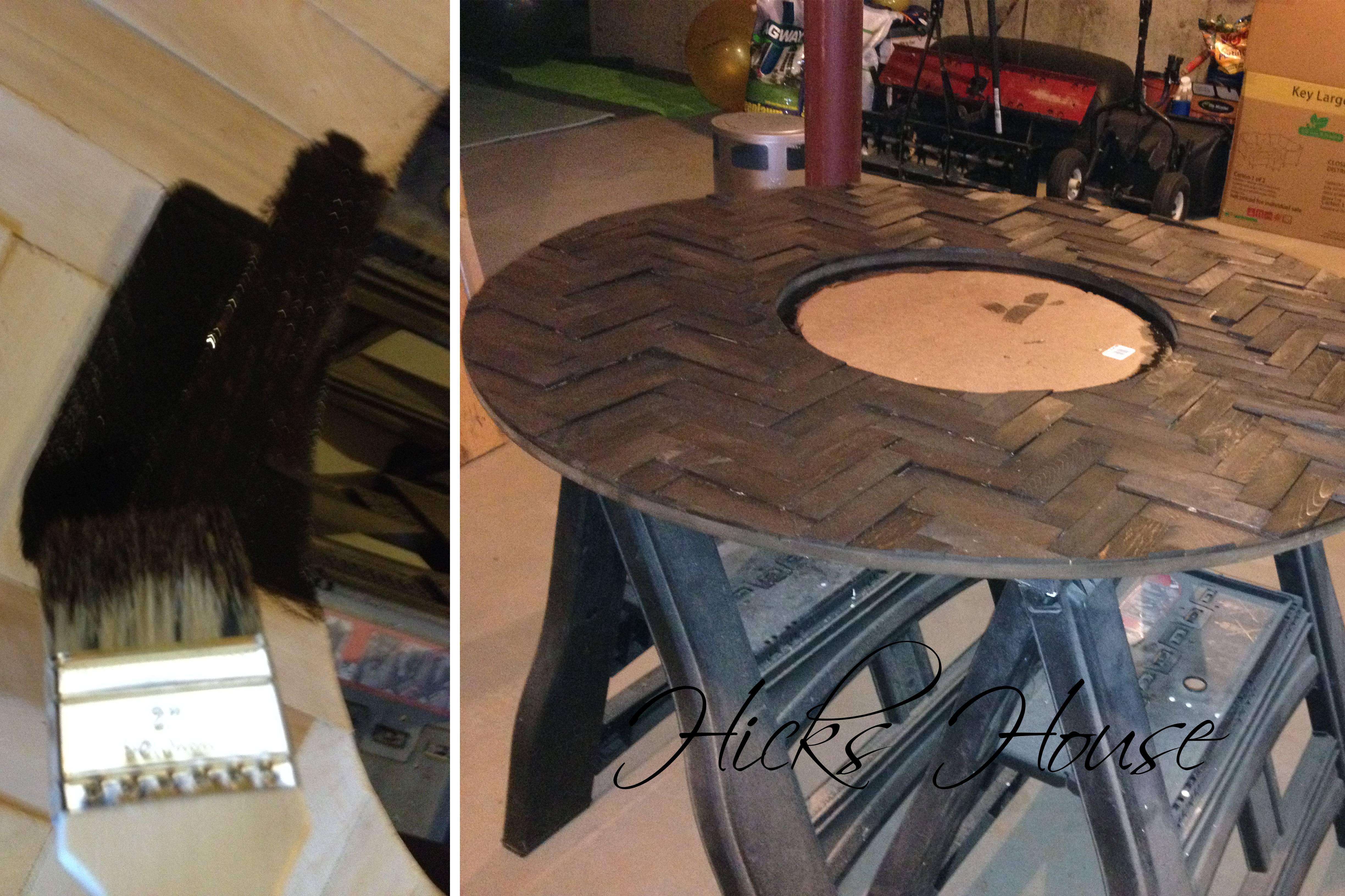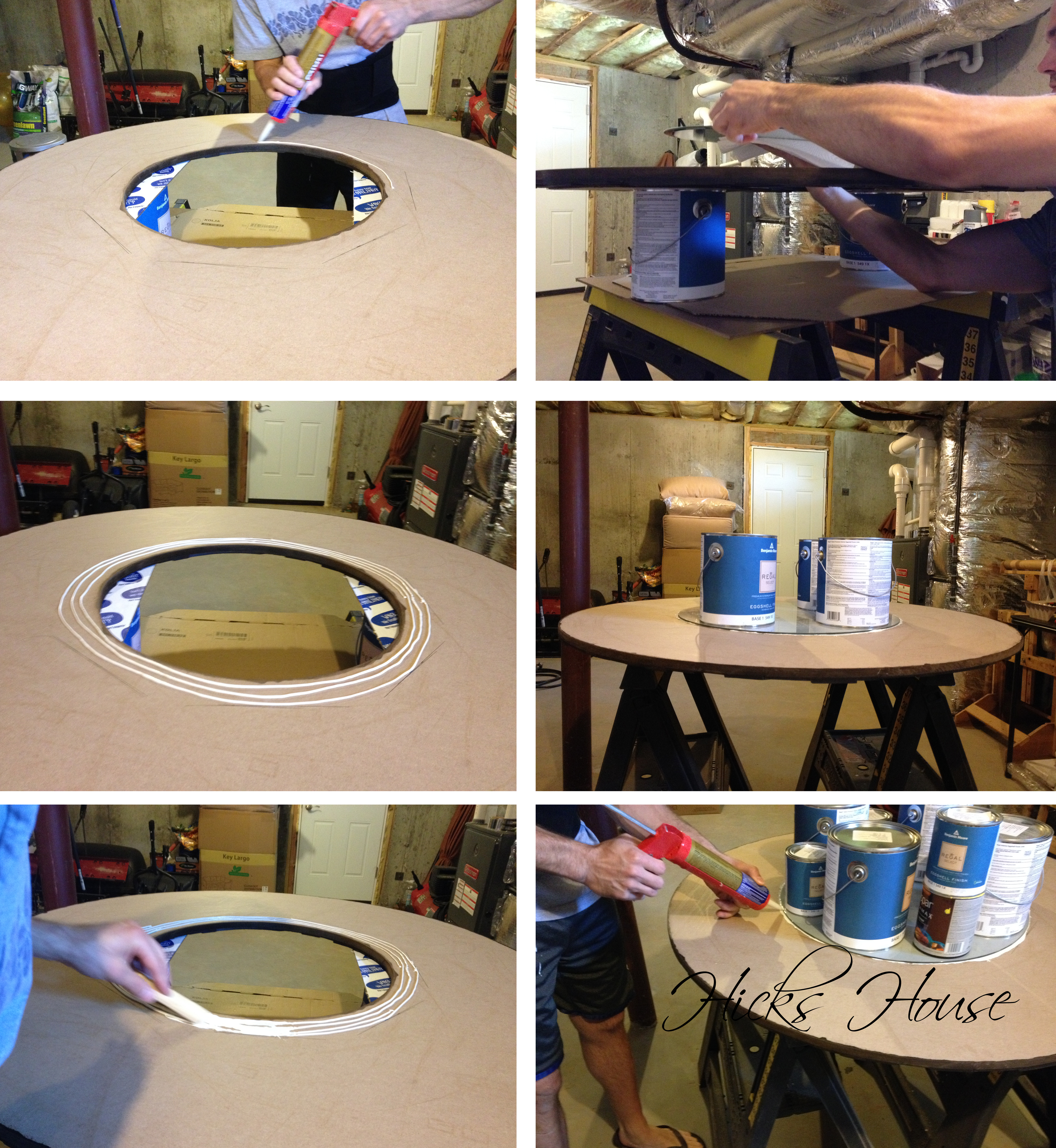 We then laid the panel out on the floor to have a flat work surface and followed marked evenly spaced dots across the panel about 2 inches down from the top. You have to leave enough space from the top to fit the entire grommet which is 2 3/8″ total diameter.