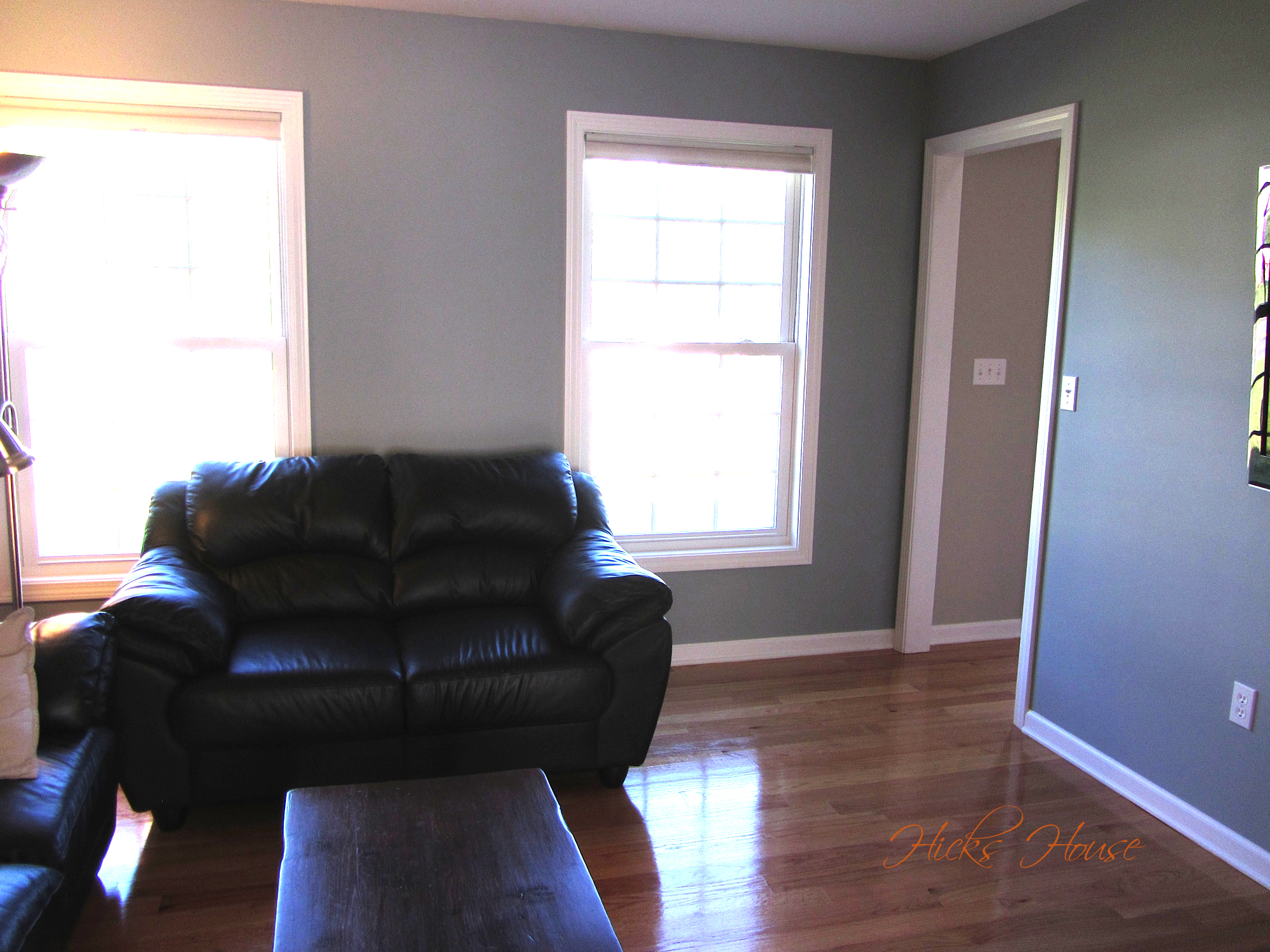 And the classic side by side showing the difference between Silver Mink and the Revere Pewter in the hallway.