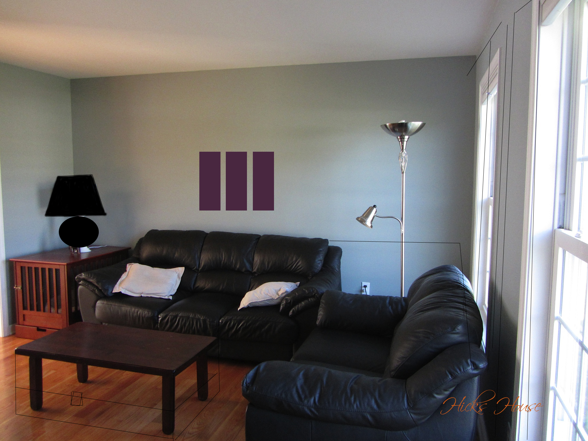 - Create custom three canvas art piece for over the couch – canvas purchased need to paint