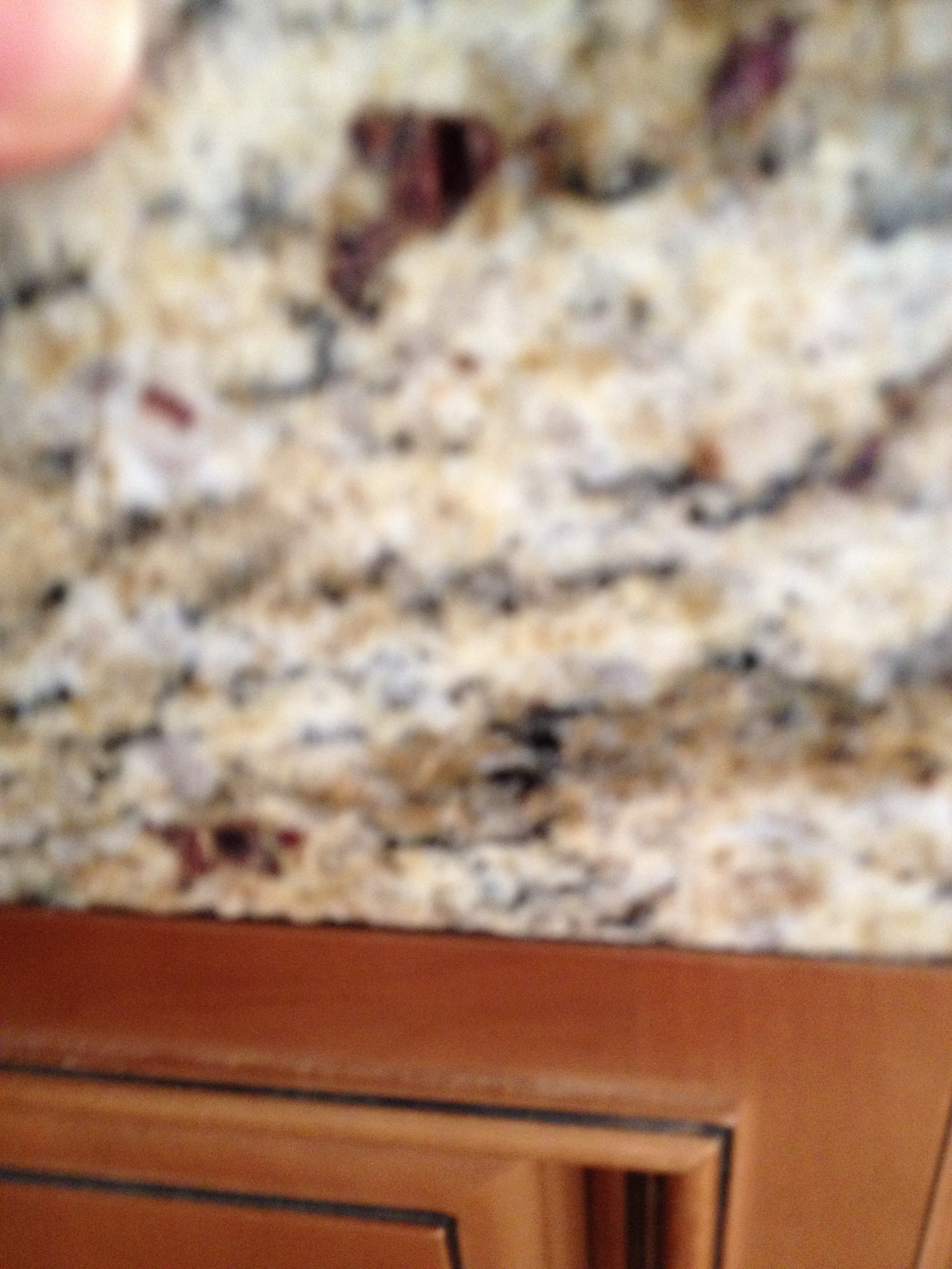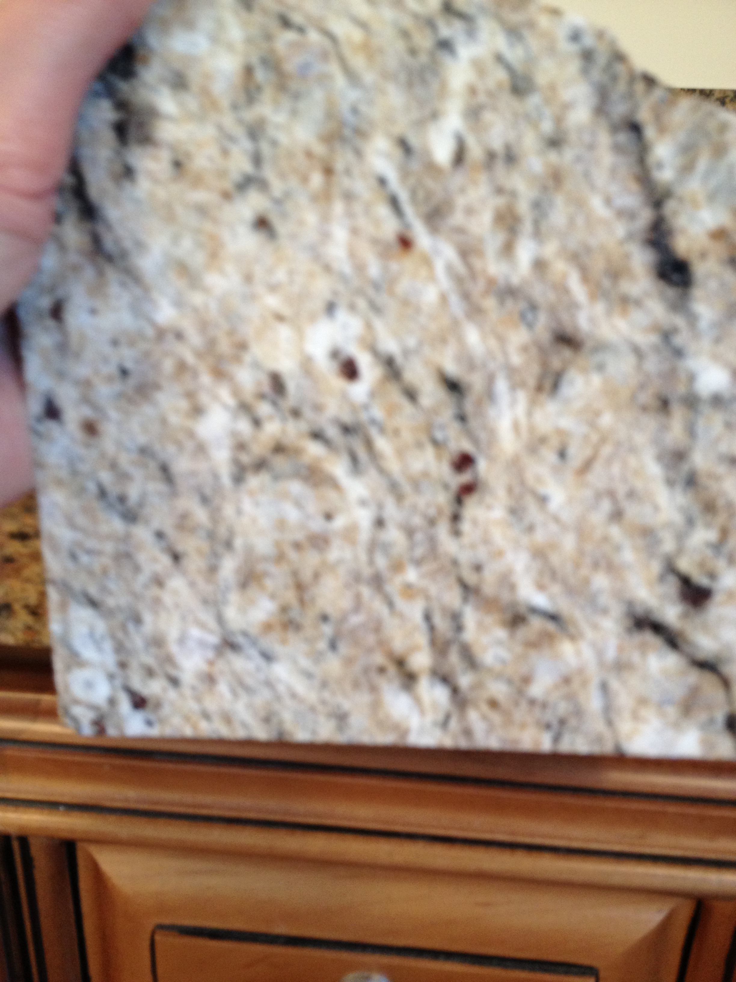 Another part of the conundrum the cabinets are not the color we’d always envisioned so the granite I had in my mind didn’t jive with the existing cabinets.  Had we started from ground zero and built this house from the ground up I would have gone with a much darker cabinet.  But the cabinets we have are a glazed maple (shown in the photos) that have a darker coloring within the grooves of the door than on the flat surface, and we want to compliment them the best we can.